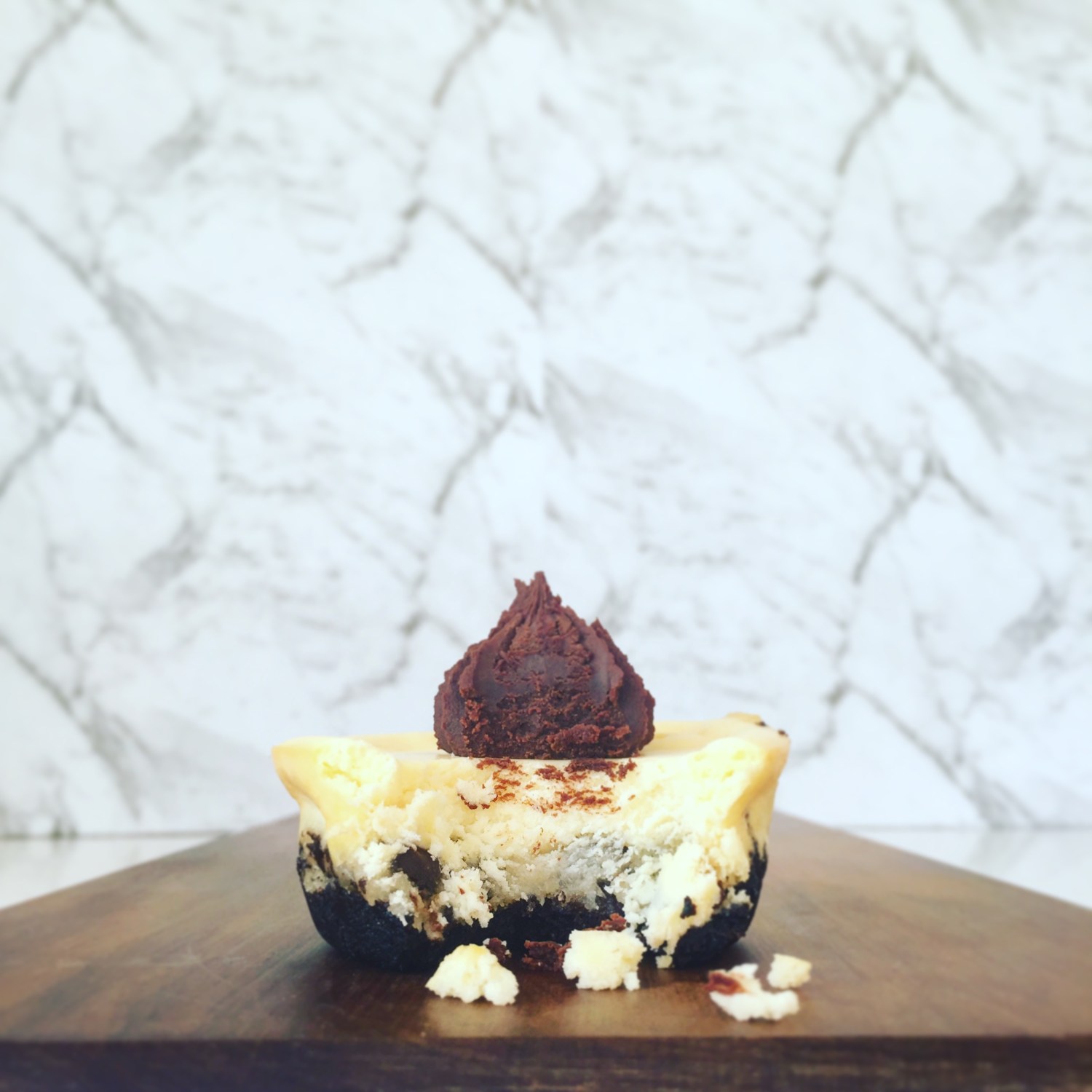 I like cheesecake. I like cookie dough. I like chocolate. All of the boxes get ticked with these dreamy little treats. A big cheesecake is all good and well, but a take a forkful here and there, and all of a sudden the whole thing is gone and my pants don’t fit. Instead, I can make these little cakes, keep a couple and give the rest away, and they’re also a great idea for dinner parties or pot-luck. They’ve got a rich chocolatey base and a tangy cream cheese filling. Hidden in the middle is a decadent cookie dough packed with chocolate chips, and it’s all topped off with a dollop of ganache. Go on, you know you want to.
