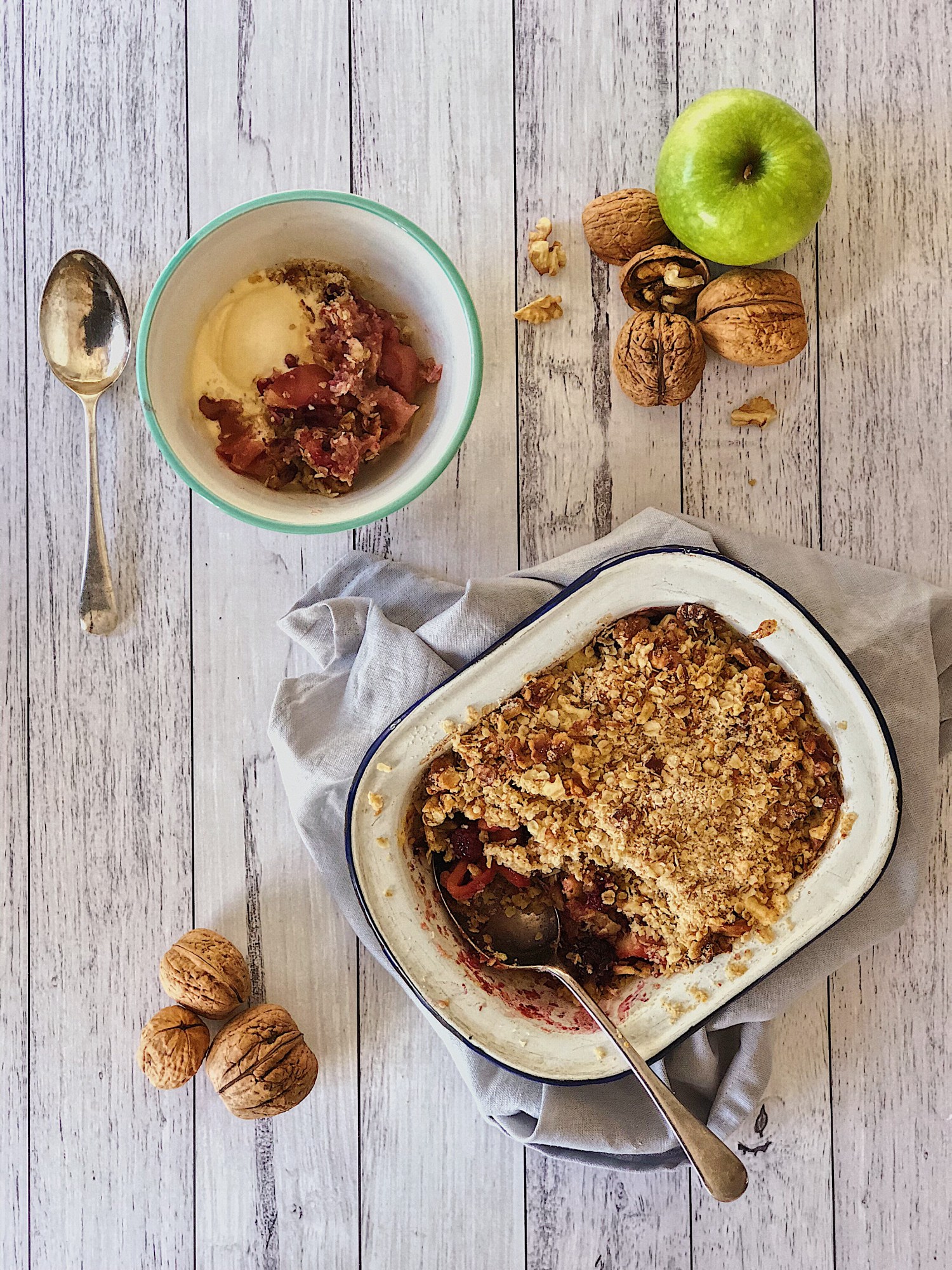 I’m a huge fan of crumbles. They’re warm and hearty, and perfect for pudding on a cold winters night. And let’s be honest, fruit + rolled oats + nuts, also = breakfast.