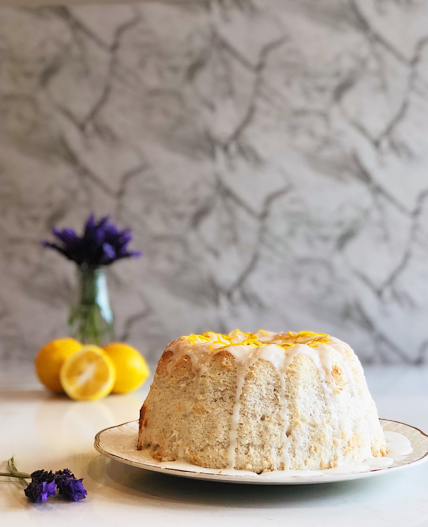 I’ve paired mine with a light glaze made from a lemon and lavender syrup, which balances out the sweetness. It’s perfect for afternoon tea, so go and scrounge around in your freezer for frozen egg whites.