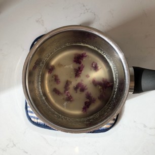 Add the lavender and simmer for another 2 minutes, then remove from the heat and allow to cool.