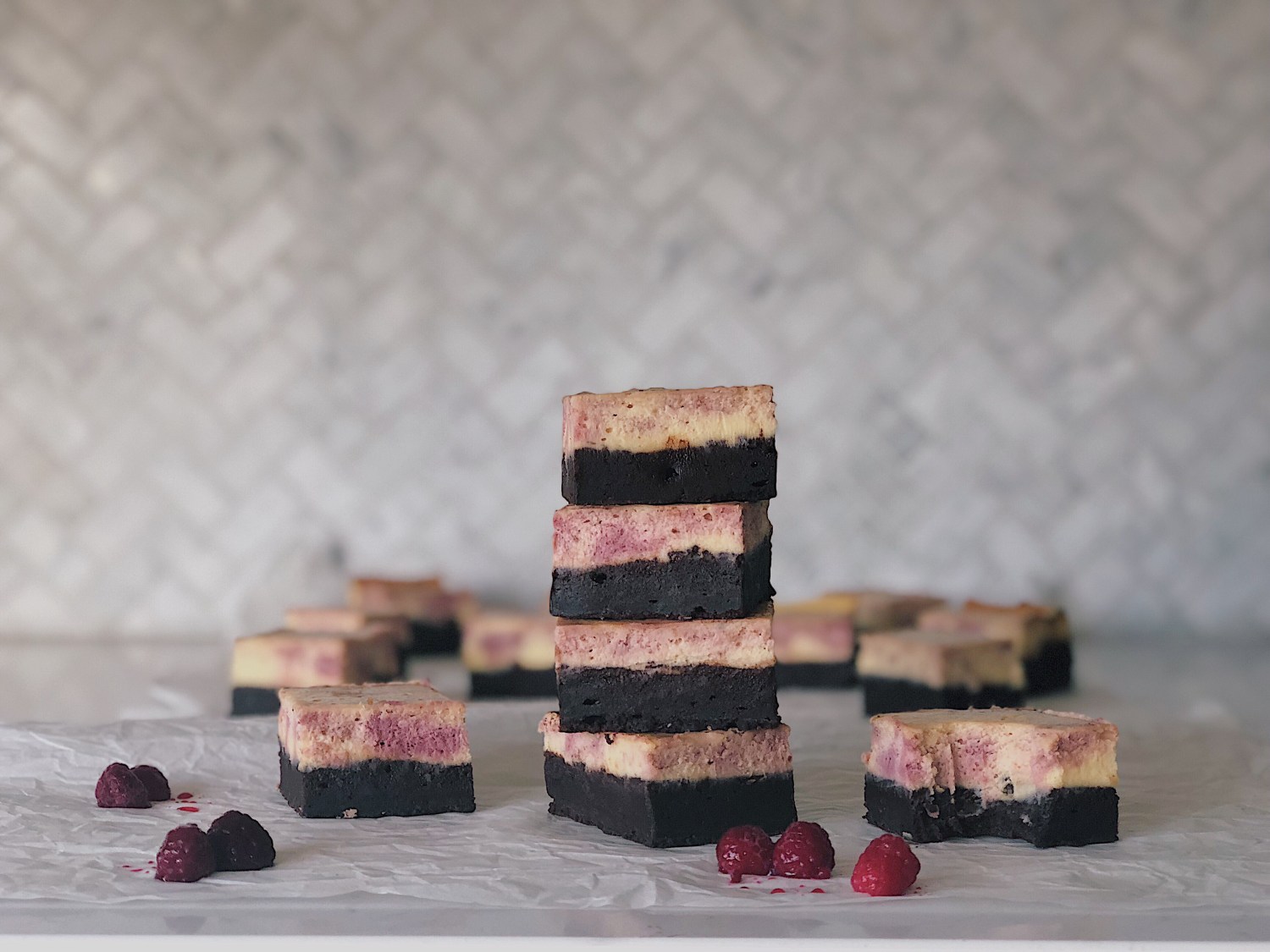 This little mashup solves that problem. Brownie + cheesecake = all bases covered. The brownie is my go-to recipe and we’ve used this cheesecake recipe before too. For some added tanginess, I’ve added freeze dried raspberry powder which balances out the richness. It is very, very good, if I do say so myself.