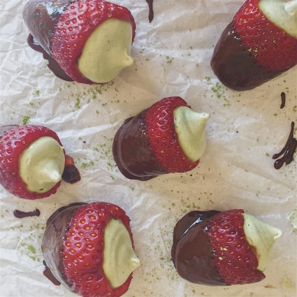 Matcha marshmallow stuffed strawberries